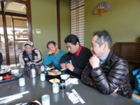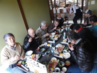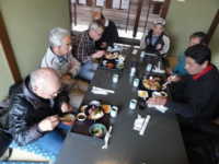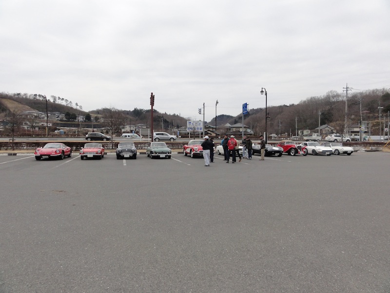 食事を終えて駐車場に行くと、敬老会の?バスから大勢の人がクルマに近づいてきます。