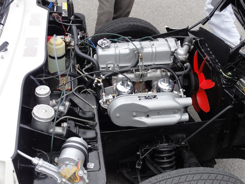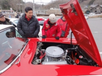 子連れの車好きご夫婦を交えて、ガバっと口を開けたボンネットの下を見入っています。