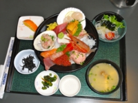 森田水産で今日食べた三品、まずはおまかせ海鮮丼、豪華!