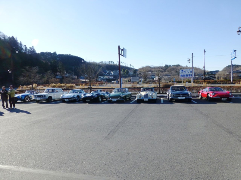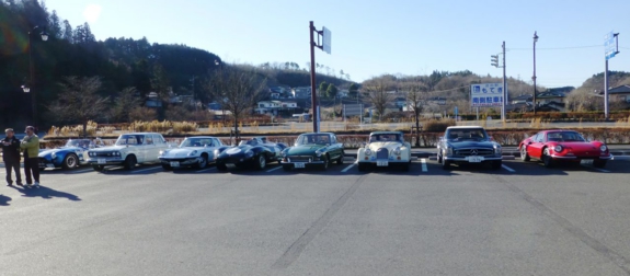 2014年走り始めは大洗へ向かいます。「もてぎ道の駅」には8台集まりました。今年トラブル大賞を狙っている高橋敏夫さんは乗り出したクルマが調子悪く、別の車で現地集合に成りました。
