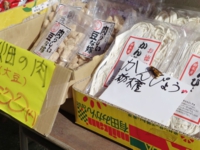 かんぴょうの看板の上に大きなスズメバチが、この後店のおばさんにハエハタキで潰されました