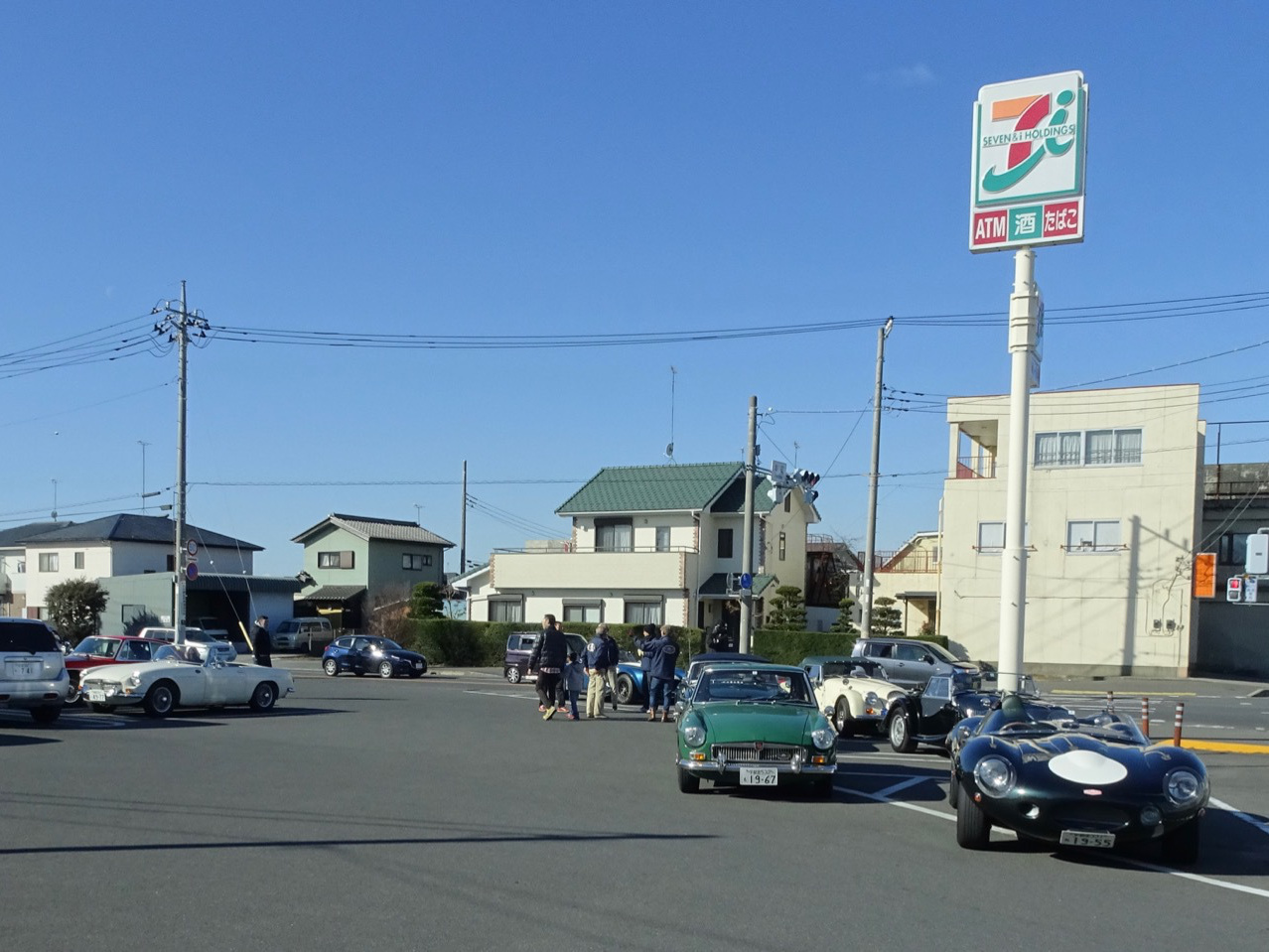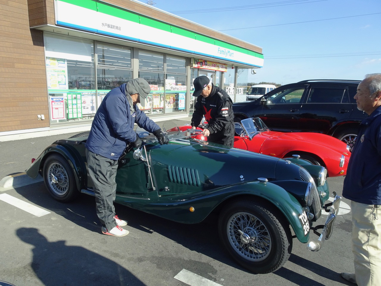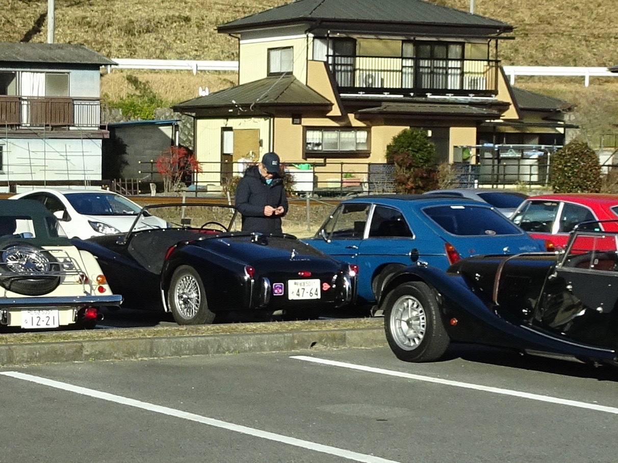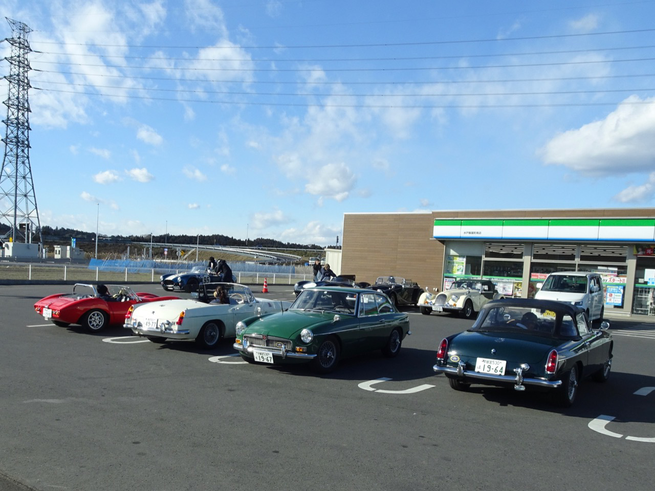 再び水戸北インターファミマに 駐車場でギアがゴリゴリ鳴っている早乙女さんのMGBクラッチの切れが悪いようです今年最後の話題提供車!