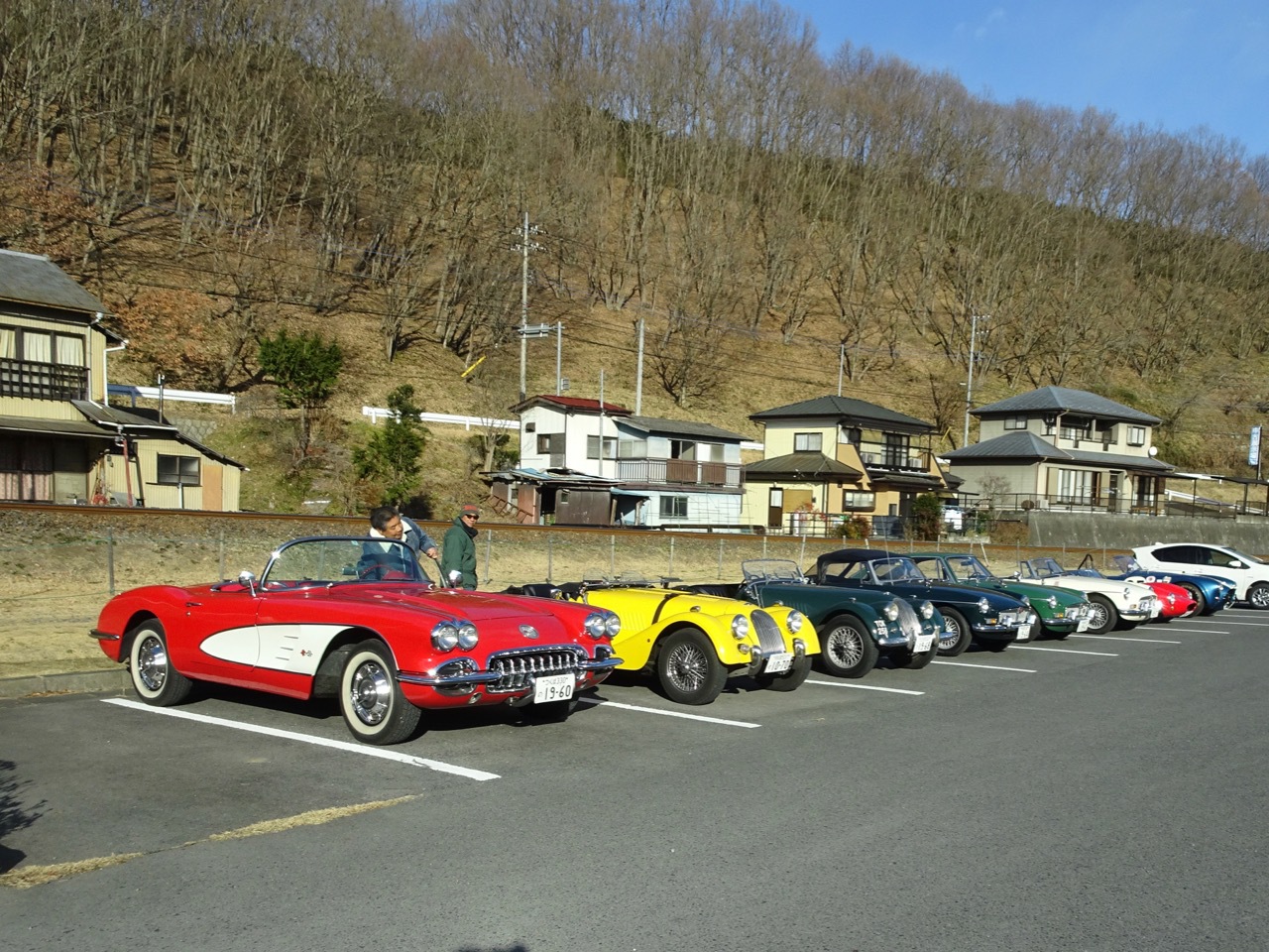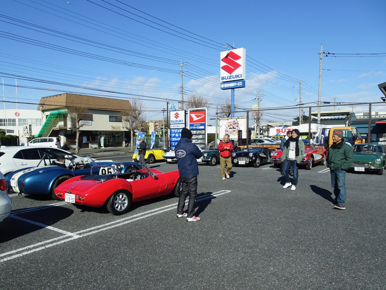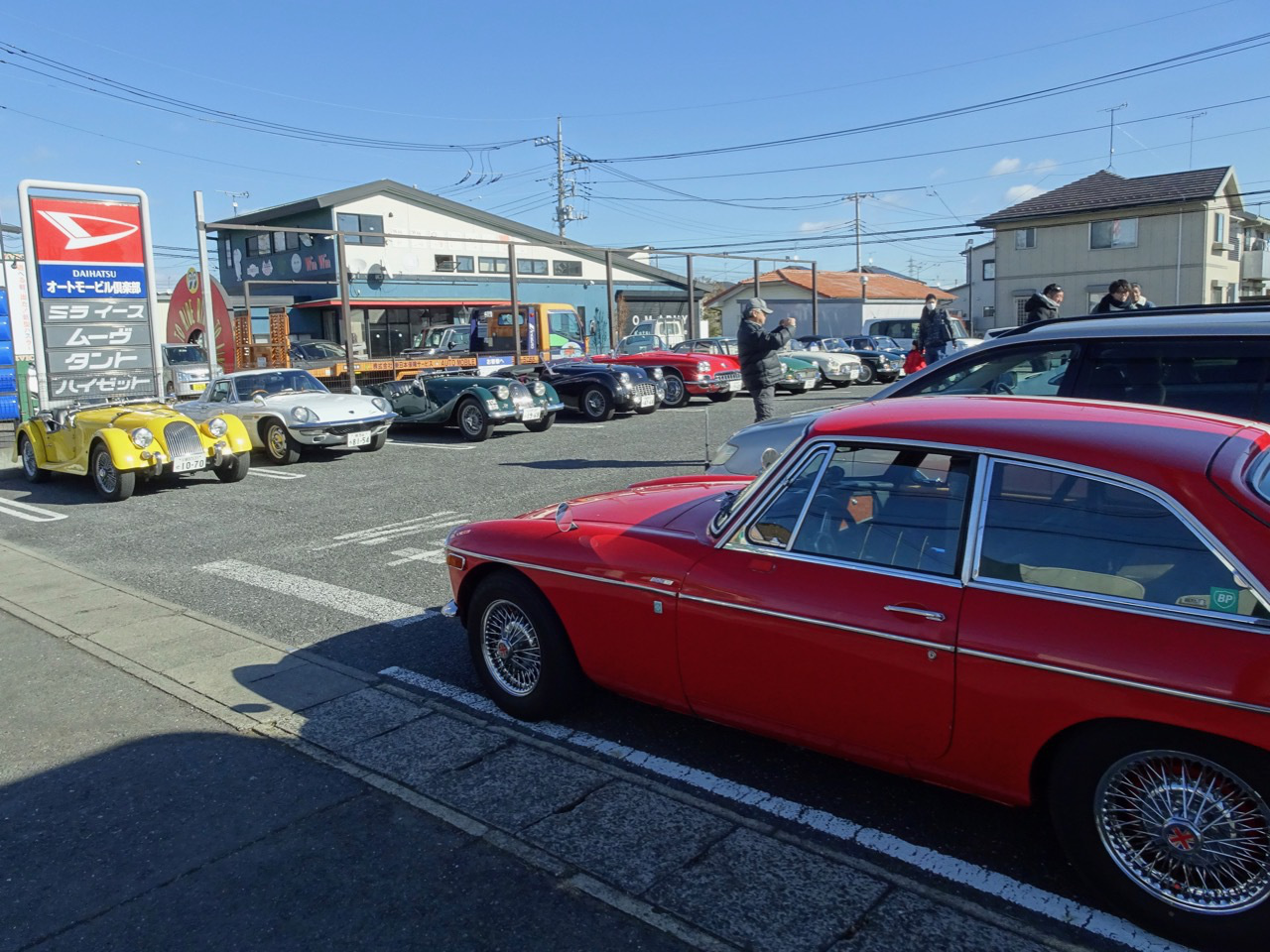 再び水戸北インターファミマに 駐車場でギアがゴリゴリ鳴っている早乙女さんのMGBクラッチの切れが悪いようです今年最後の話題提供車!